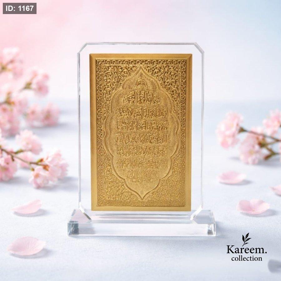 آية الكرسي كرستال وجهين ذهبي و ذهبي ( 8.5*6*2 سم )