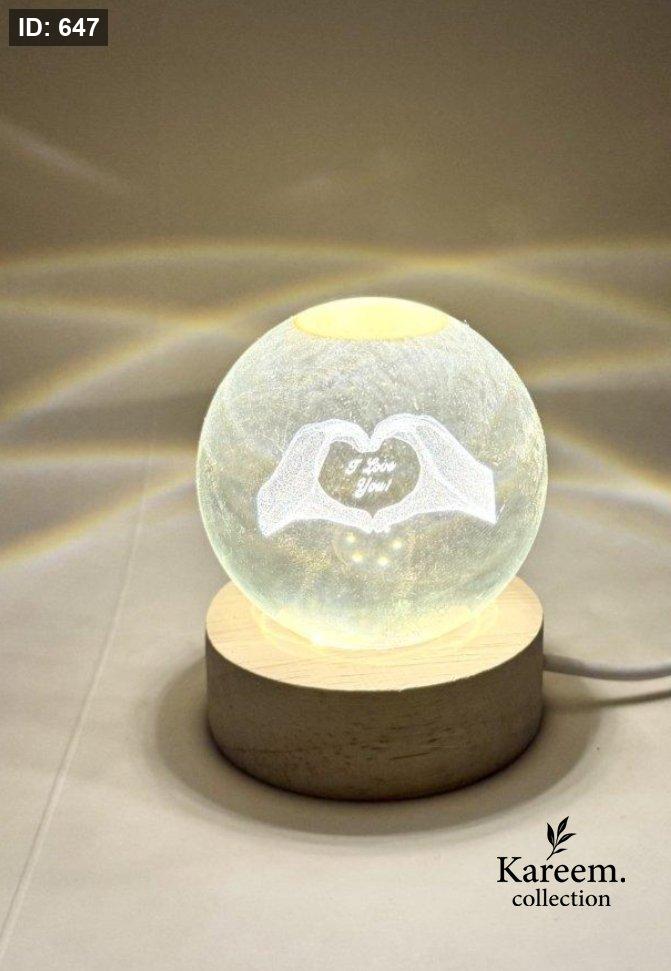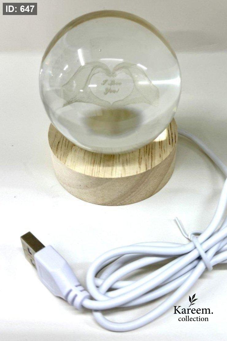 بلورة كرستال love مع قاعدة خشبي (مضيئة)