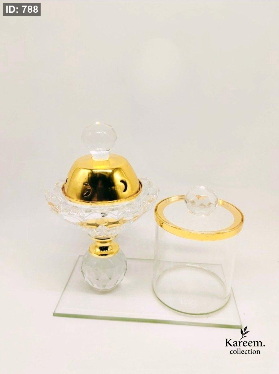 مبخرة كريستال غطاء نحاس مع علبة حلو(11*11)سم