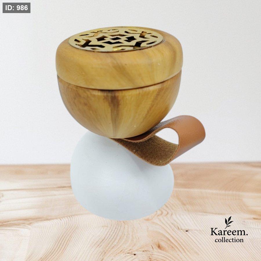 مبخرة حجر وخشب مع إطار جلد & علبة شفاف
